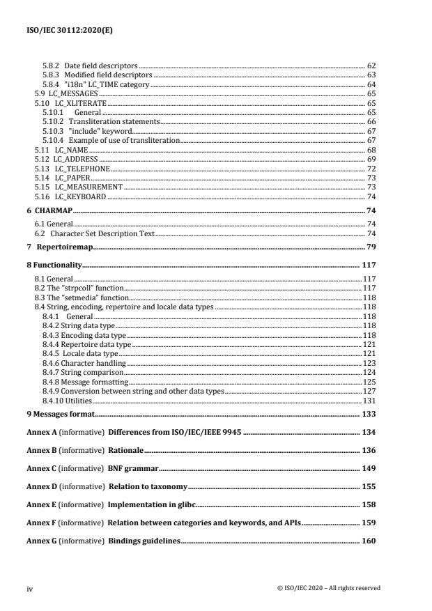 Keywords: ISO/IEC 30112:2020, cultural conventions, locale specification, collation, CHARMAP, ISO/IEC 10646, i18n, character set, repertoiremap, locale data.