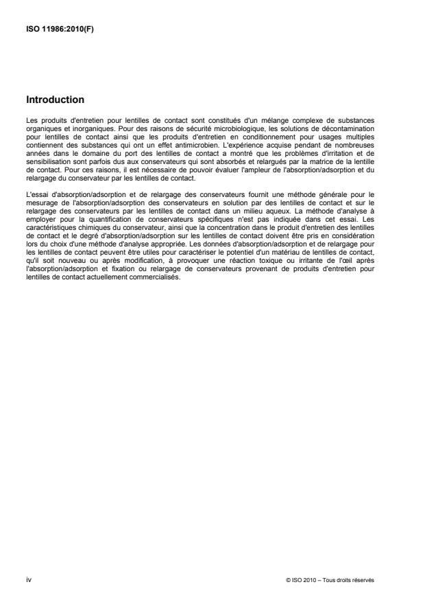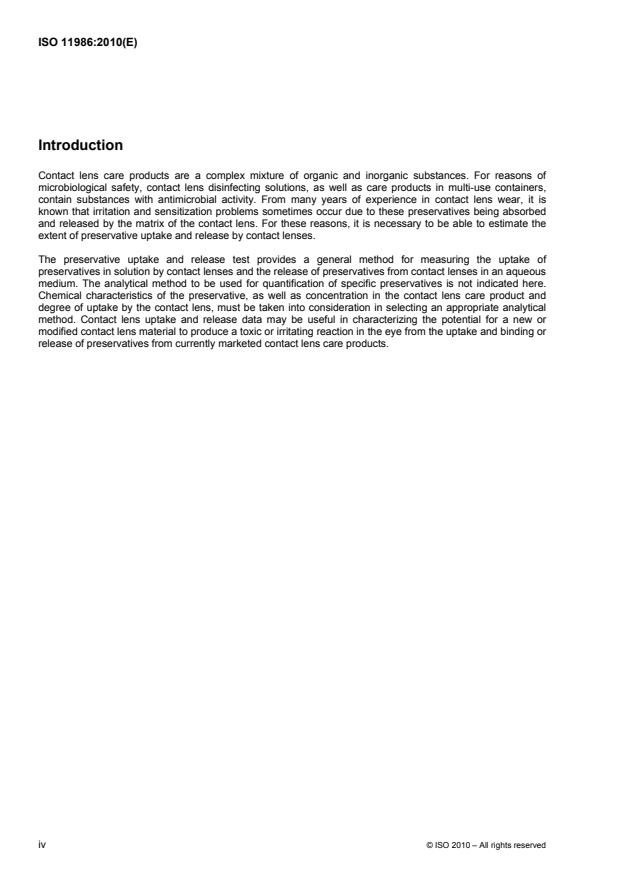 ISO 11986:2010 - Ophthalmic optics -- Contact lenses and contact lens care products -- Determination of preservative uptake and release