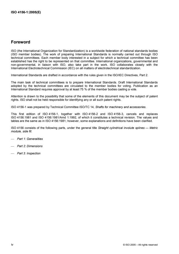 ISO 4156-1:2005 - Straight cylindrical involute splines -- Metric module, side fit