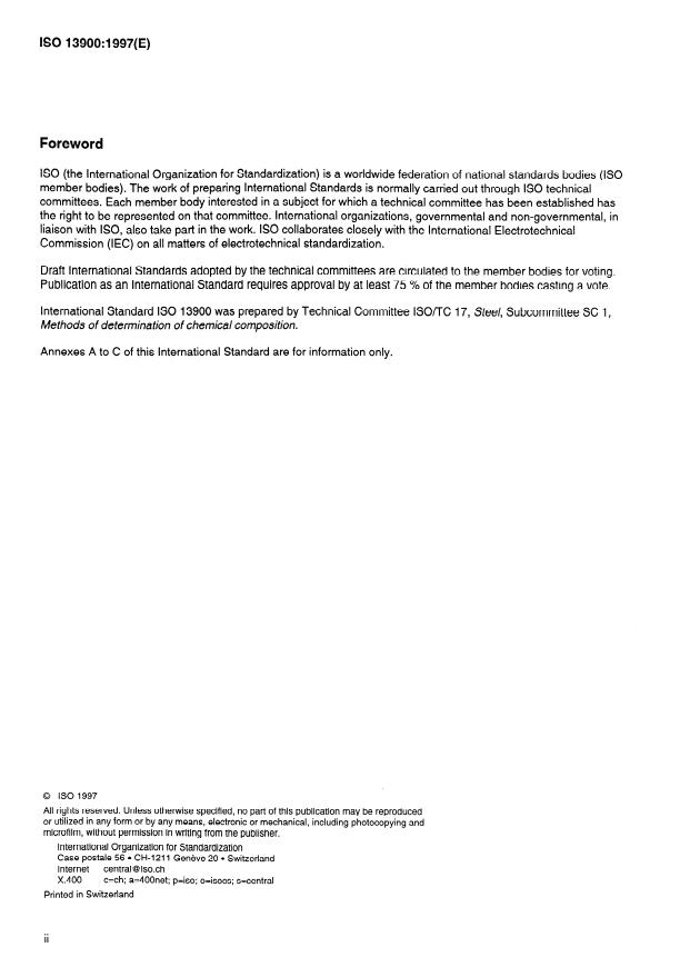 International Standard IS0 13900 was prepared by Technical Committee ISOFC 17, Steel, Subcommittee SC 1,