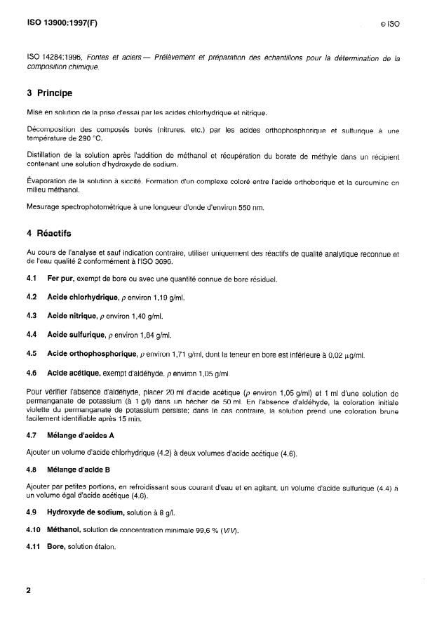 Keywords: ISO 13900:1997, boron determination, curcumin spectrophotometric method, steel analysis, distillation, trace boron, spectrophotometry, calibration, precision.