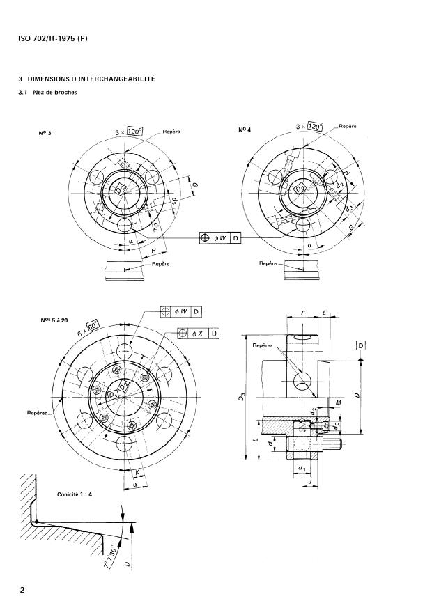 ISO 702-2:1975 - Machines-outils -- Nez de broches et faux-plateaux -- Dimensions d'interchangeabilité