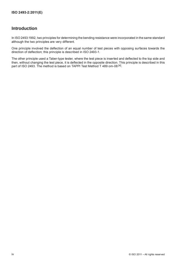 Ta del standarda ISO 2493 določa postopke za merjenje upogibne odpornosti papirja, kartona in lepenke. Ta del standarda ISO 2493 se uporablja za določanje upogibnega momenta, ki je potreben za upogib prostega konca 38 mm širokega vpetega vzorca za 15°, pri čemer se vzorec obteži na upogibni dolžini 50 mm. Pri kartonu in lepenki, ki se lahko pri upogibu za 15° trajno deformirata, se lahko uporabi polovični kot upogibanja, tj. 7,5°. Upogibna odpornost je izražena v obliki upogibnega momenta in parametrov, ki jih določi proizvajalec merilnika po Taberju. Metoda se uporablja predvsem za papir z visoko gramaturo.