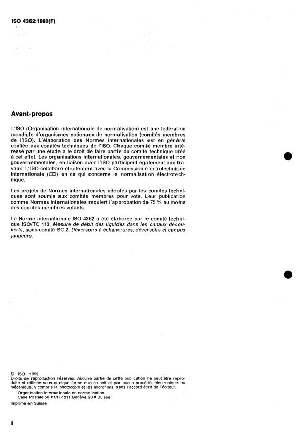 ISO 4362:1992 is a standard published by the International Organization for Standardization (ISO). Its full title is "Measurement of liquid flow in open channels — Trapezoidal profile weirs". This standard covers: Measurement of liquid flow in open channels — Trapezoidal profile weirs