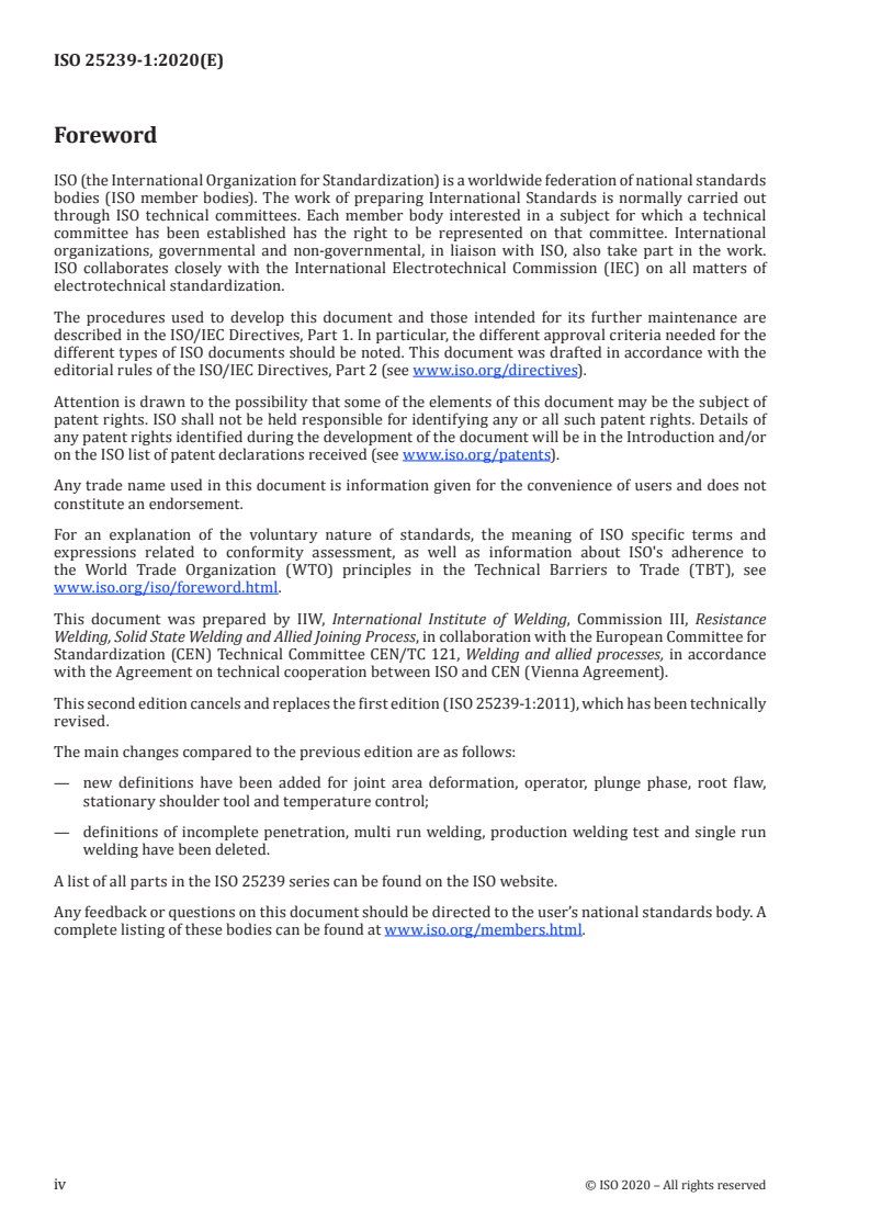 The document references ISO/TR 25901 (vocabulary for welding and allied processes) and lists related parts of ISO 25239 for full process and qualification guidance.