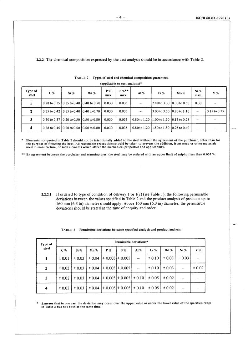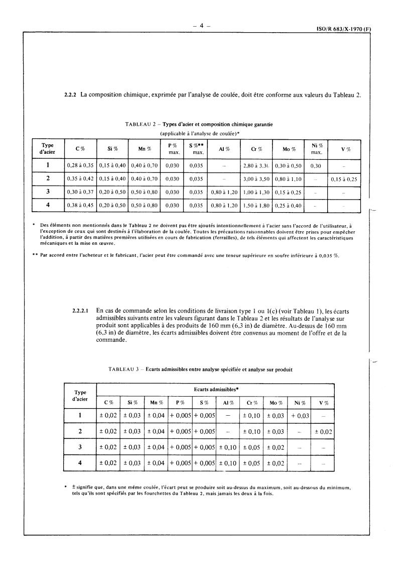 The IS0 Recommendation R 683/X, Heat-treated steels, alloy steels and free-cutting steels - Part I O :