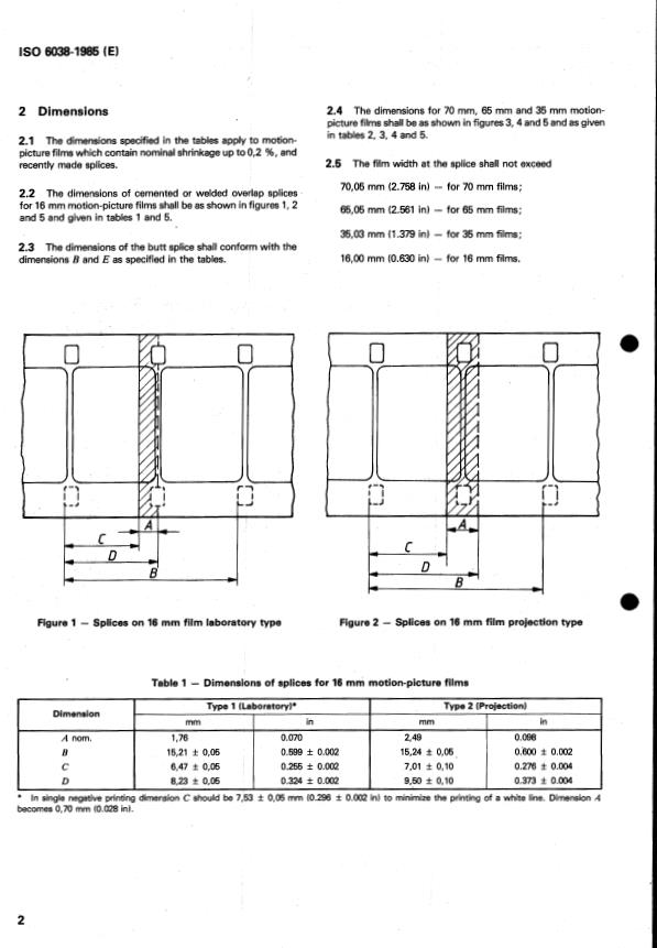 ISO 6038:1985 - Cinematography — Splices for use on 70 mm, 65 mm, 35 mm and 16 mm motion-picture films — Dimensions and locations Released:9/26/1985