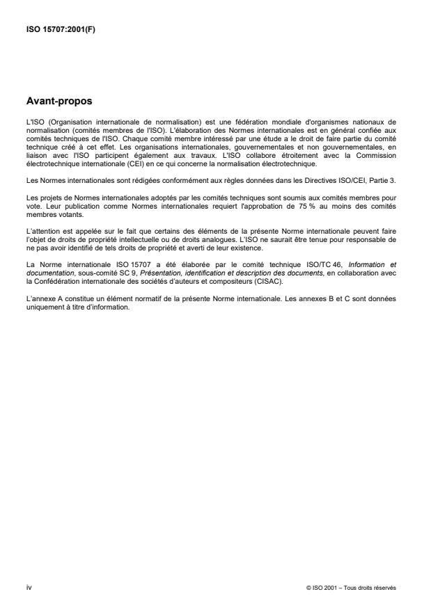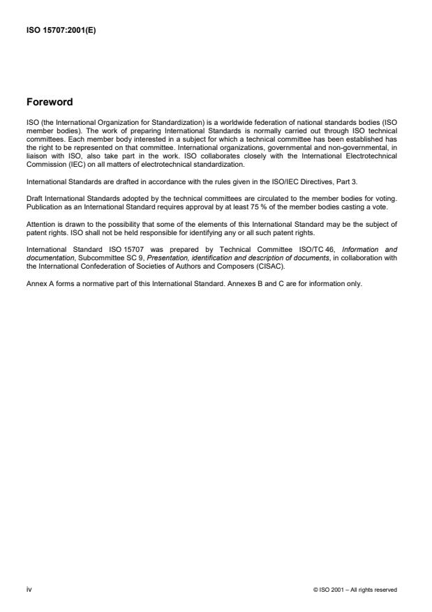 ISO 15707:2001 - Information and documentation -- International Standard Musical Work Code (ISWC)