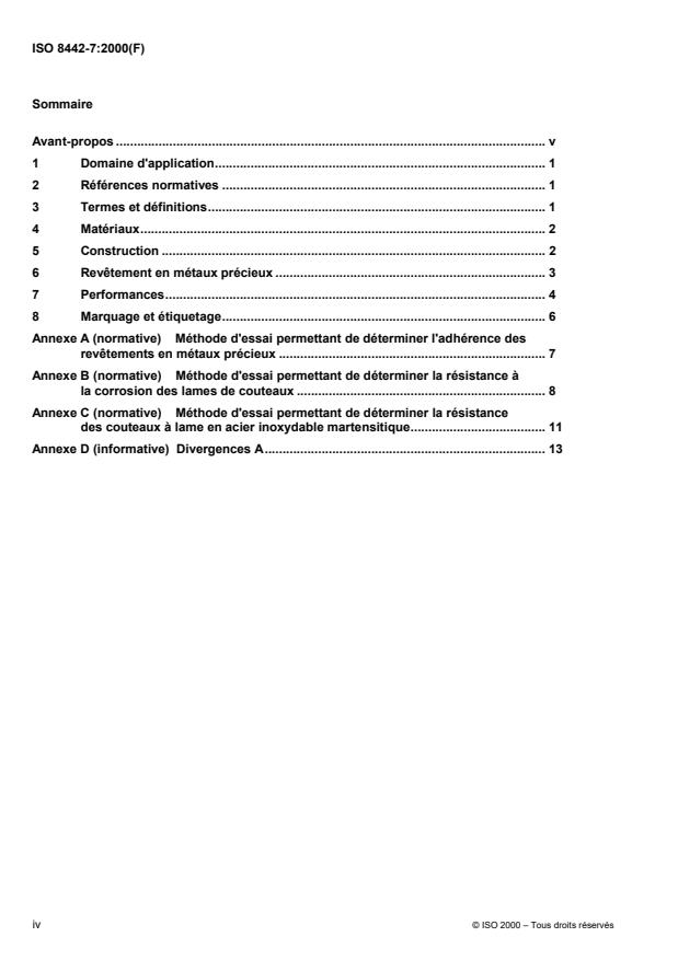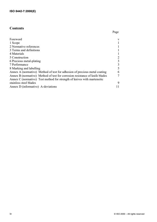 Keywords: ISO 8442-7:2000, table cutlery, silver cutlery requirements, precious metals, cutlery standards, corrosion resistance, hardness, coating adhesion, food contact materials.