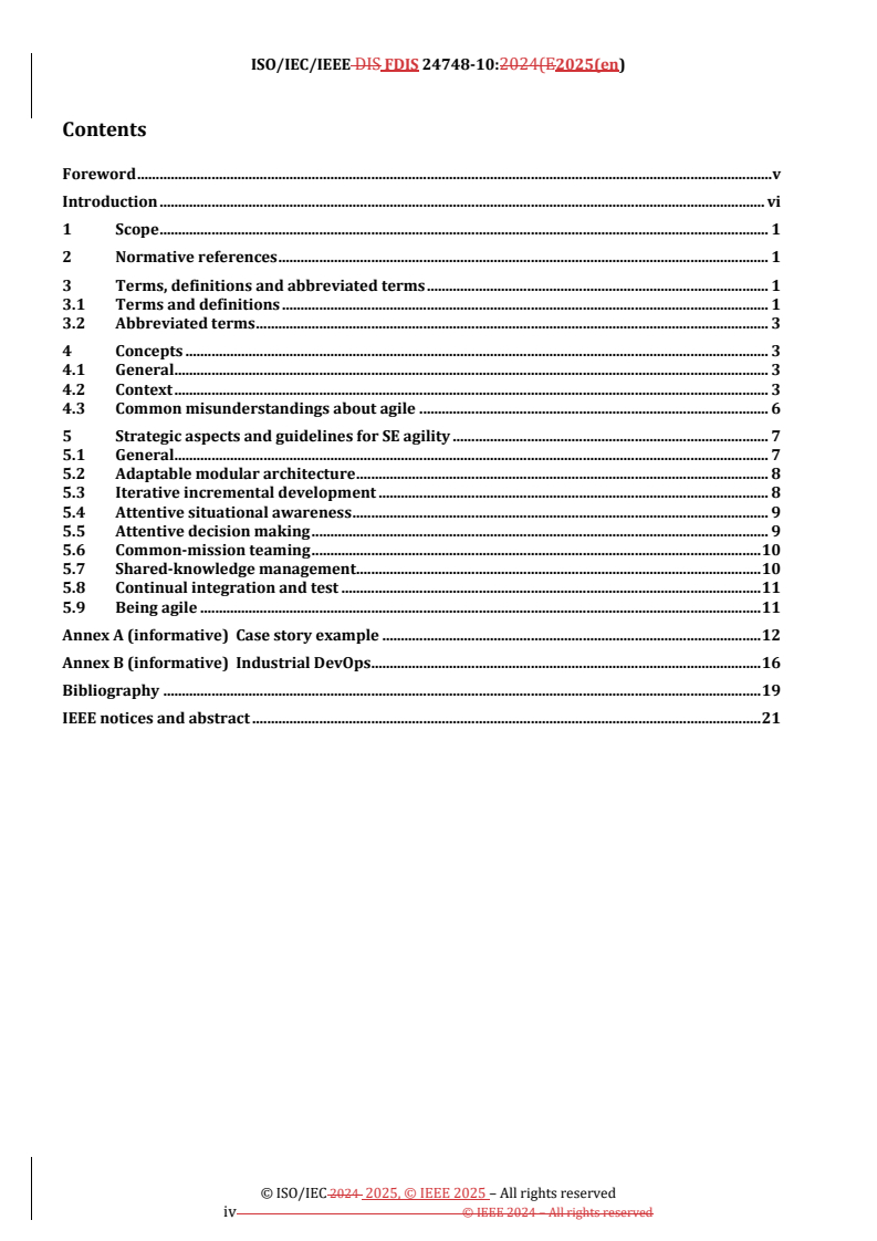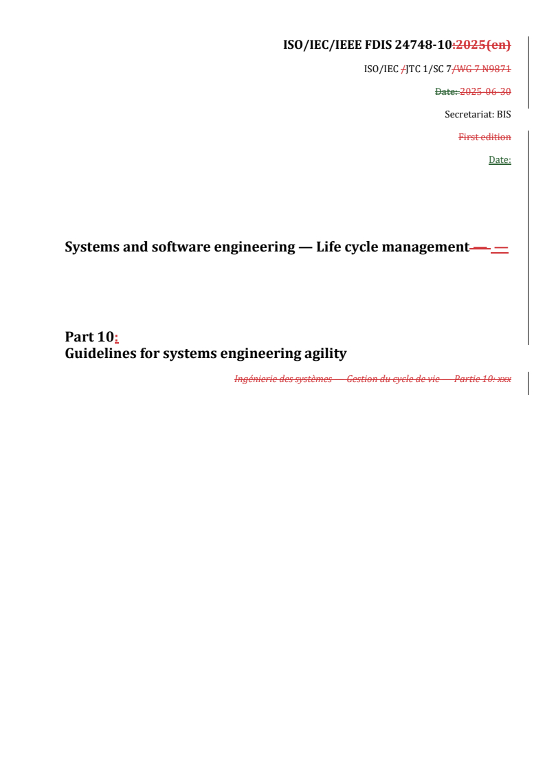 REDLINE ISO/IEC/IEEE FDIS 24748-10 - Systems and software engineering — Life cycle management — Part 10: Guidelines for systems engineering agility Released:15. 08. 2025