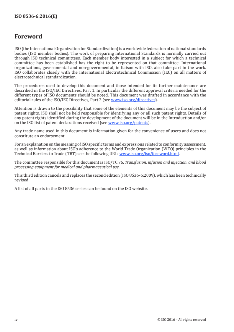 ISO 8536-6:2016 has the following relationships with other standards: It is inter standard links to ISO 8536-6:2025, ISO 8536-6:2009. Understanding these relationships helps ensure you are using the most current and applicable version of the standard.