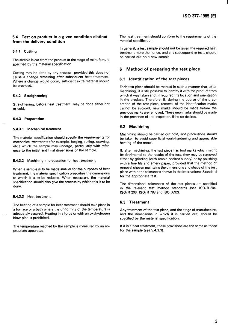 ISO 377:1985 is a standard published by the International Organization for Standardization (ISO). Its full title is "Wrought steel — Selection and preparation of samples and test pieces". This standard covers: Wrought steel — Selection and preparation of samples and test pieces