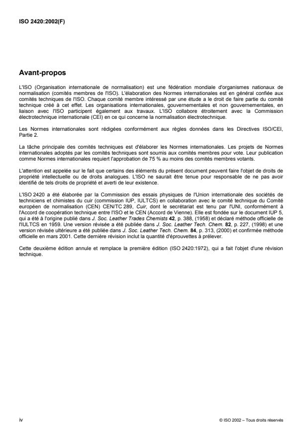 ISO 2420 was prepared by the Physical Test Commission of the International Union of Leather Technologists and