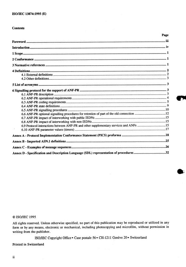 ISO/IEC 13874:1995 - Information technology -- Telecommunications and information exchange between systems -- Private Integrated Services Network -- Inter-exchange signalling protocol -- Path replacement additional network feature