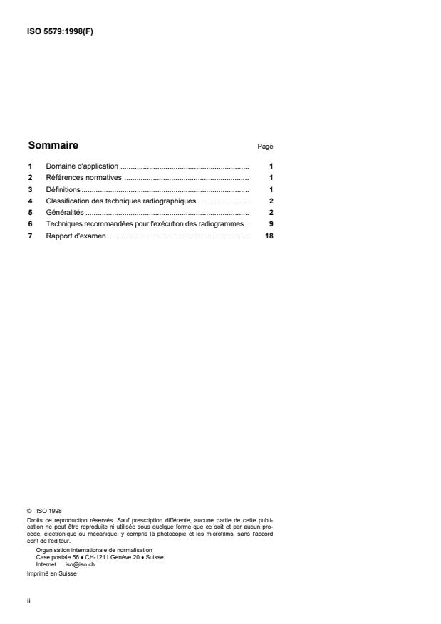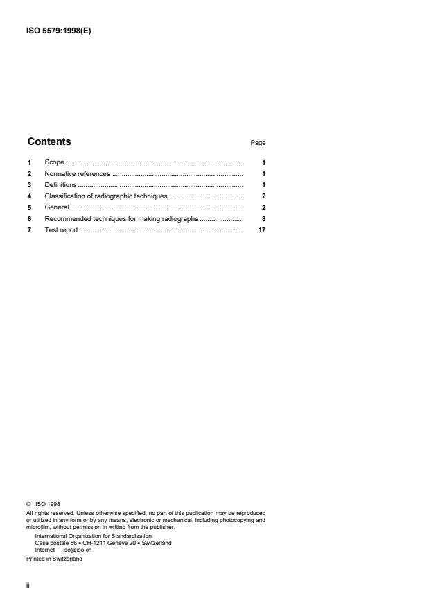 ISO 5579:1998 is a standard published by the International Organization for Standardization (ISO). Its full title is "Non-destructive testing — Radiographic examination of metallic materials by X- and gamma rays — Basic rules". This standard covers: Non-destructive testing — Radiographic examination of metallic materials by X- and gamma rays — Basic rules