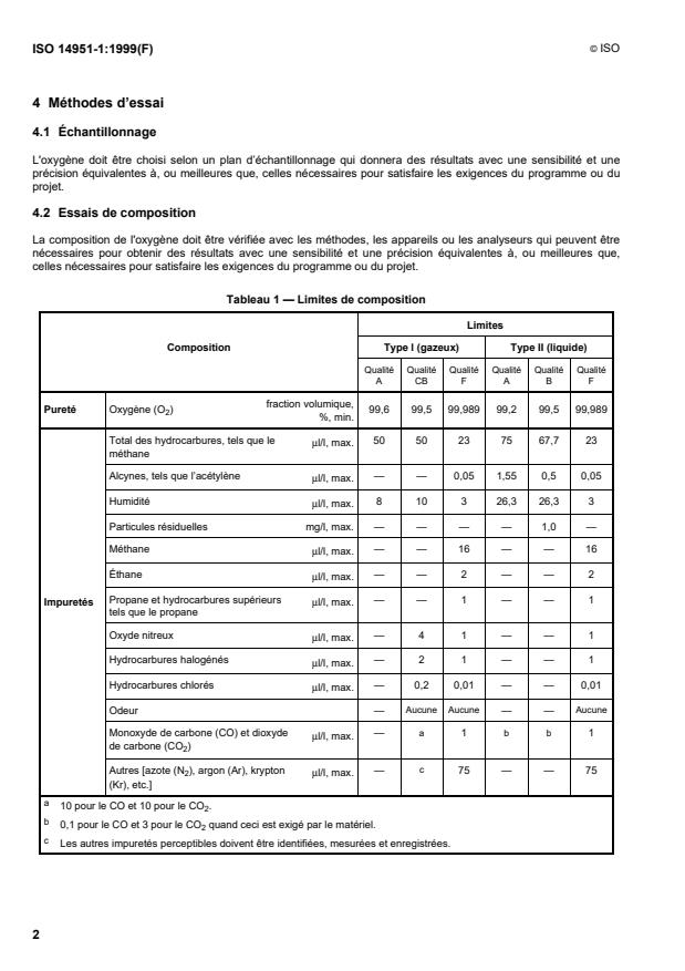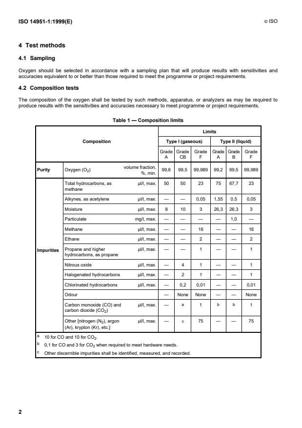 composition. This part of ISO 14951 is applicable to oxygen of the following types and grades, intended for use as