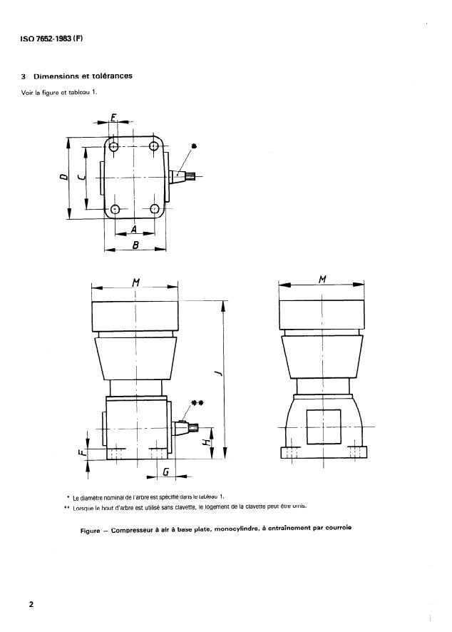 ISO 7652:1983 - Véhicules routiers -- Compresseurs a air a base plate, monocylindres, a entraînement par courroie -- Dimensions de montage