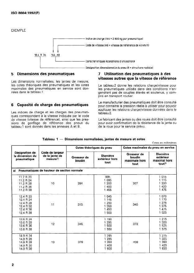 ISO 8664:1992 is a standard published by the International Organization for Standardization (ISO). Its full title is "Agricultural tractor drive-wheel tyres — Service description (load index — speed symbol) marked tyres". This standard covers: Specifies the marking, dimensions, load ratings and reference speeds for existing series of tyres. Applies to tyres of radial construction in the speed categories 30 km/h and 40 km/h.
