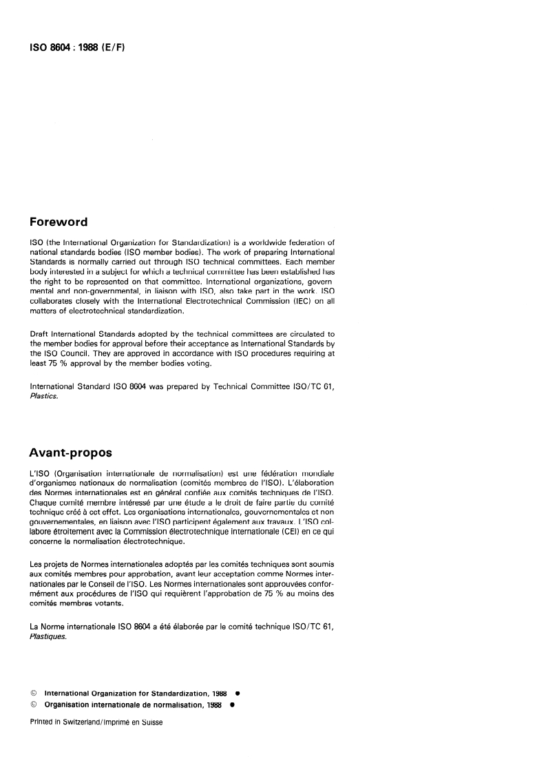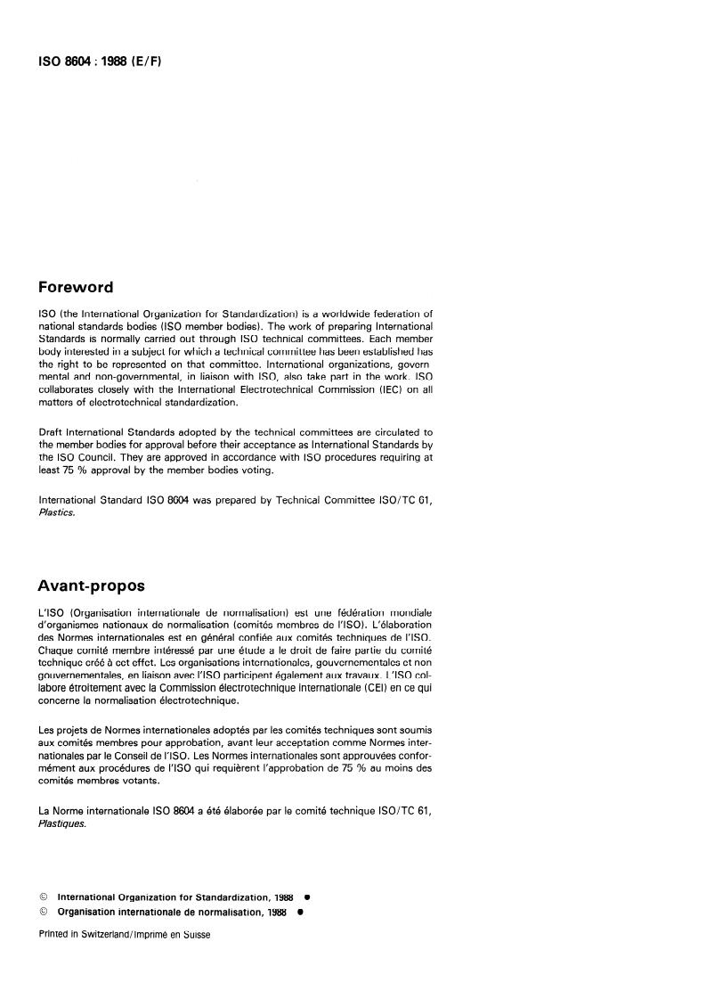 La Norme internationale ISO 8604 a etc elaboree par Ie comite technique ISO/TC 61,
