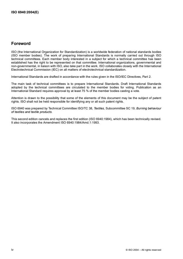 Keywords: ISO 6940, textile fabrics, burning behaviour, ease of ignition, flammability testing, vertically oriented specimens, mean ignition time, surface ignition, bottom-edge ignition.