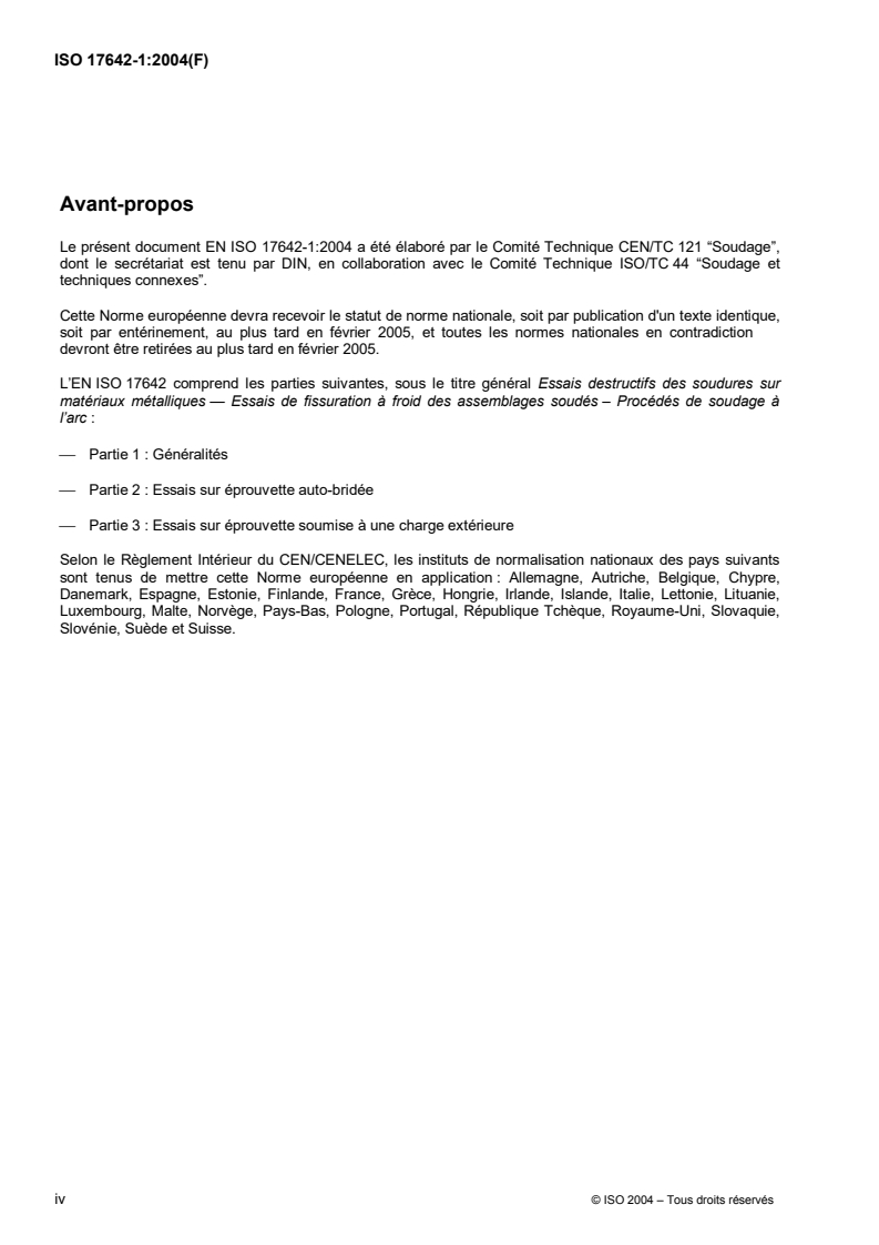 Le présent document EN ISO 17642-1:2004 a été élaboré par le Comité Technique CEN/TC 121 “Soudage”,
