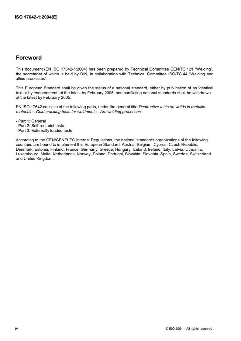 This document (EN ISO 17642-1:2004) has been prepared by Technical Committee CEN/TC 121 “Welding”,