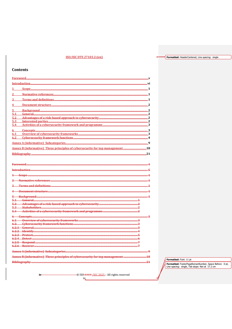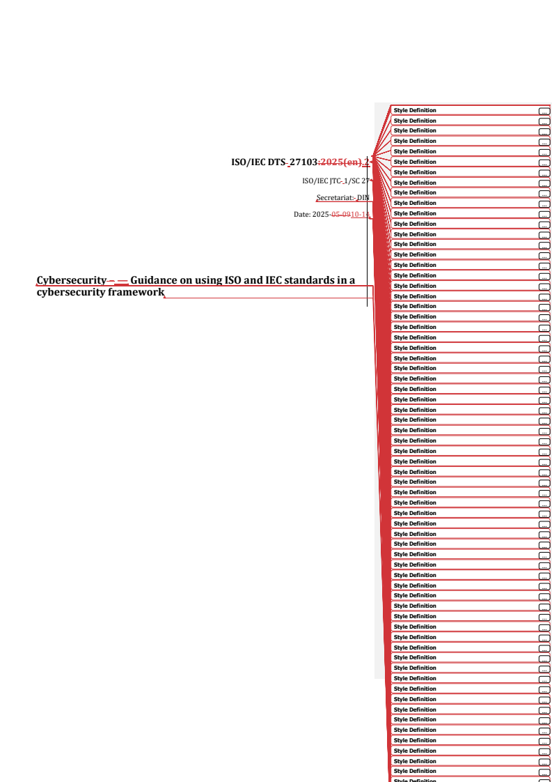 REDLINE ISO/IEC DTS 27103 - Cybersecurity — Guidance on using ISO and IEC standards in a Cybersecurity Framework Released:12. 05. 2025