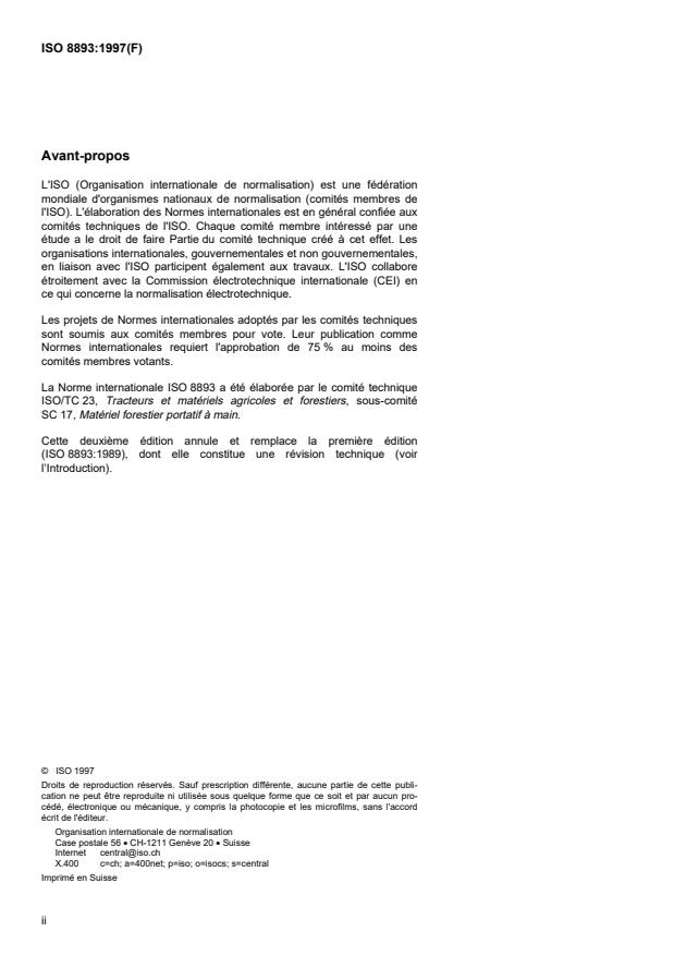 ISO 8893:1997 is a standard published by the International Organization for Standardization (ISO). Its full title is "Forestry machinery — Portable brush-cutters and grass-trimmers — Engine performance and fuel consumption". This standard covers: La présente Norme internationale prescrit une méthode de mesure de la puissance et de la consommation de carburant des moteurs à combustion interne utilisés sur les débrousailleuses et coupe-herbe portatifs.