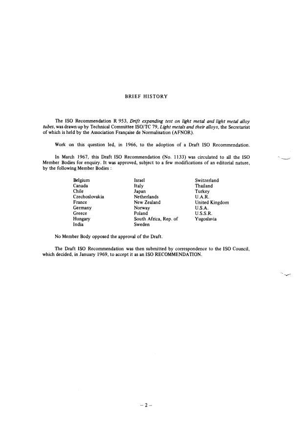 ISO/R 953:1969 - Drift expanding test on light metal and light metal alloy tubes