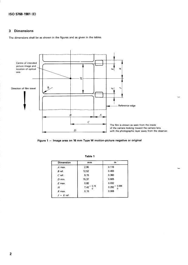 ISO 5768:1981 is a standard published by the International Organization for Standardization (ISO). Its full title is "Cinematography — Image produced by camera aperture Type W on 16 mm motion-picture film — Position and dimensions". This standard covers: Cinematography — Image produced by camera aperture Type W on 16 mm motion-picture film — Position and dimensions