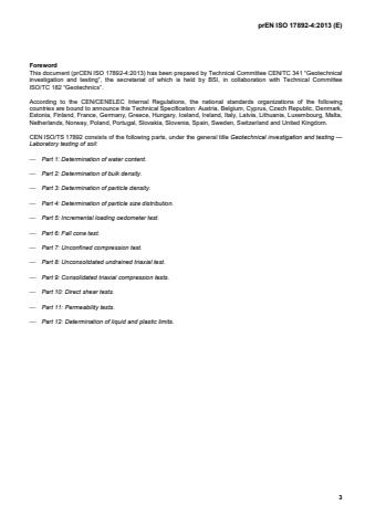 ISO 17892-4:2016 is a standard published by the International Organization for Standardization (ISO). Its full title is "Geotechnical investigation and testing - Laboratory testing of soil - Part 4: Determination of particle size distribution". This standard covers: ISO 17892-4.2016 specifies a method of determining the particle size distribution of soils. ISO 17892-4.2016 is applicable to the laboratory determination of the particle size distribution of a soil test specimen by sieving, or sedimentation, or a combination of both within the scope of geotechnical investigations. The particle size distribution is one of the most important physical characteristics of soil. Classification of soils is mainly based on the particle size distribution. Many geotechnical and geohydrological properties of soil are related to the particle size distribution. The particle size distribution provides a description of soil based on a subdivision in discrete classes of particle sizes. The size of each class can be determined by sieving and/or sedimentation. Coarse soils are usually tested by sieving, but fine and mixed soils are usually tested by a combination of sieving and sedimentation, depending on the composition of the soil. The sieving method described is applicable to all non-cemented soils with particle sizes less than 125 mm. Two sedimentation methods are described: the hydrometer method and the pipette method. NOTE ISO 17892-4.2016 fulfils the requirements of the particle size distribution testing in accordance with EN 1997-2.