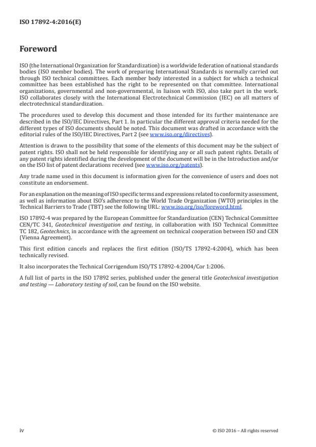 ISO 17892-4:2016 has the following relationships with other standards: It is inter standard links to ISO 21647:2004, ISO/TS 17892-4:2004. Understanding these relationships helps ensure you are using the most current and applicable version of the standard.
