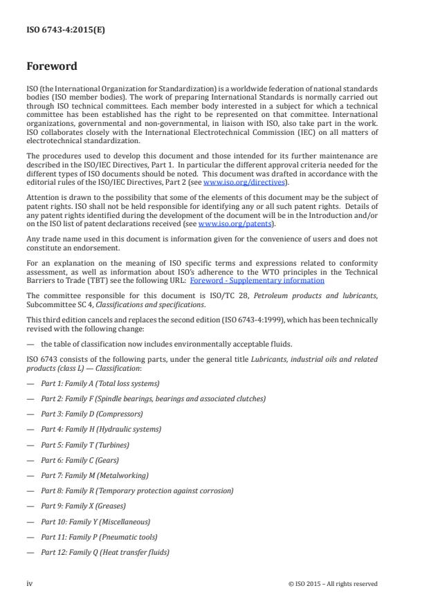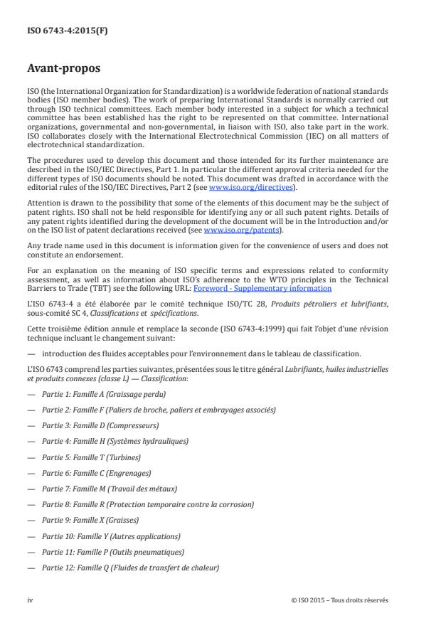 Cette troisième édition annule et remplace la seconde (ISO 6743-4:1999) qui fait l’objet d’une révision