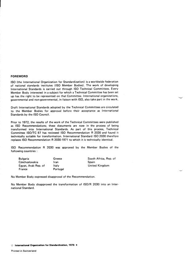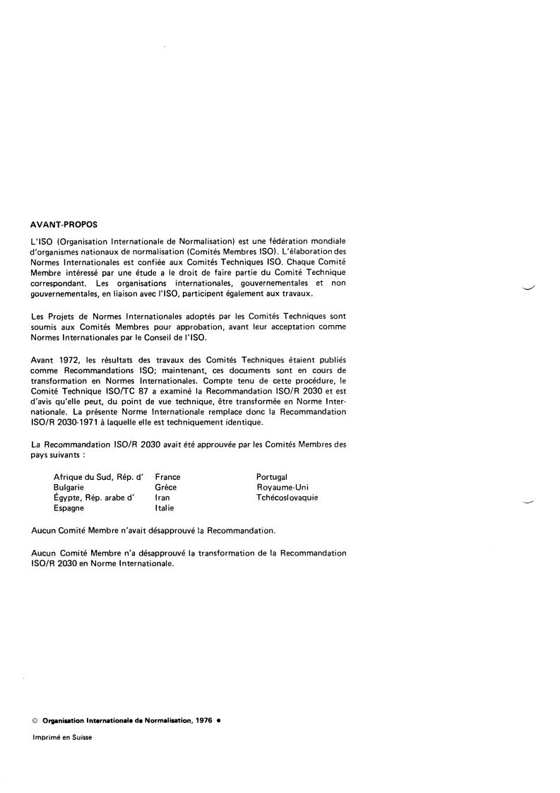 Committee ISO/TC 87 has reviewed IS0 Recommendation R 2030 and found it