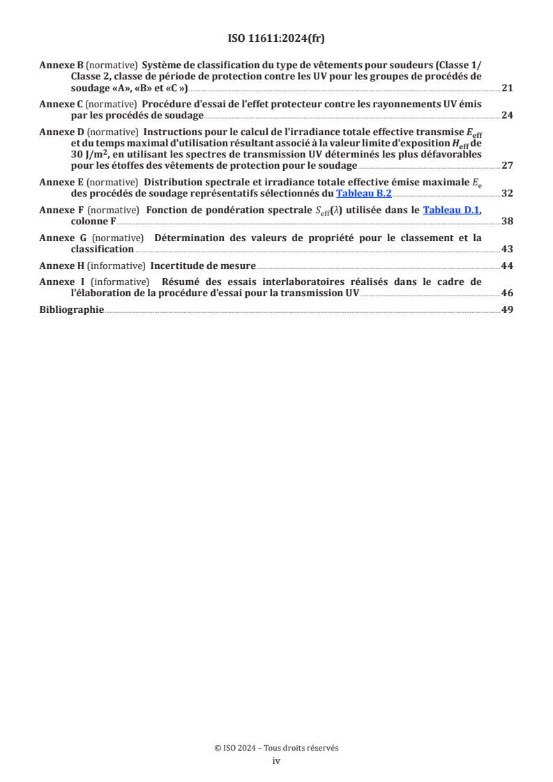 - Annexes in ISO 11611:2024 provide detailed test procedures, spectral data, classification tables and instructions for calculating safe exposure times.