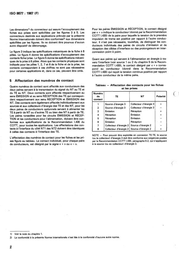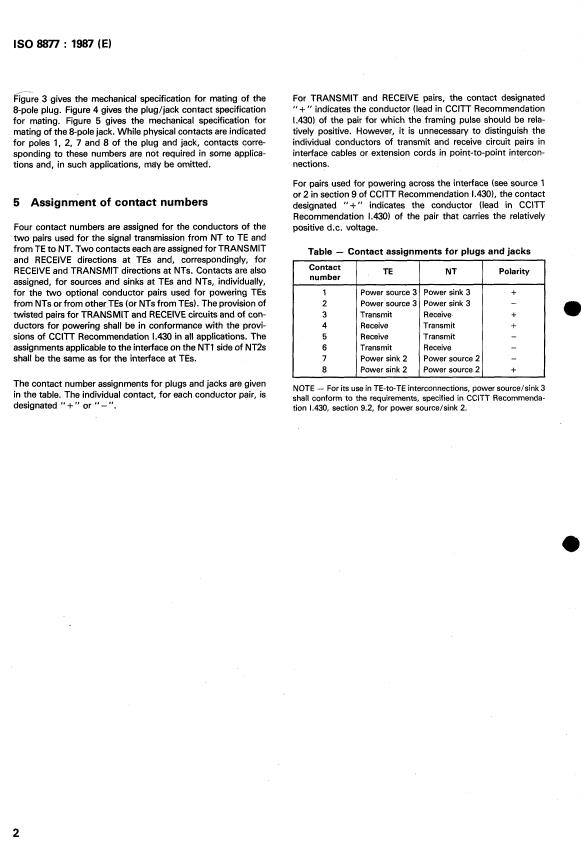 ISO 8877:1987 is a standard published by the International Organization for Standardization (ISO). Its full title is "Information processing systems — Interface connector and contact assignments for ISDN basic access interface located at reference points S and T". This standard covers: Information processing systems — Interface connector and contact assignments for ISDN basic access interface located at reference points S and T