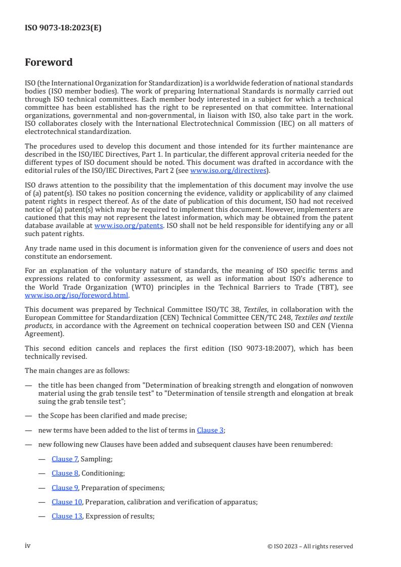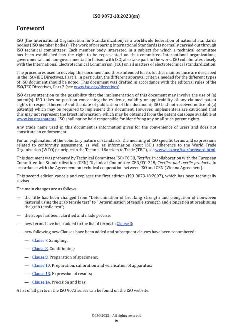 ISO 9073-18:2023 - Nonwovens — Test methods — Part 18: Determination of tensile strength and elongation at break using the grab tensile test Released:17. 11. 2023