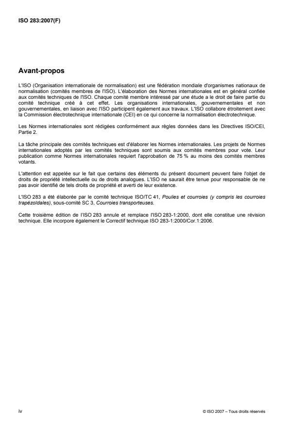 L'ISO 283 a été élaborée par le comité technique ISO/TC 41, Poulies et courroies (y compris les courroies