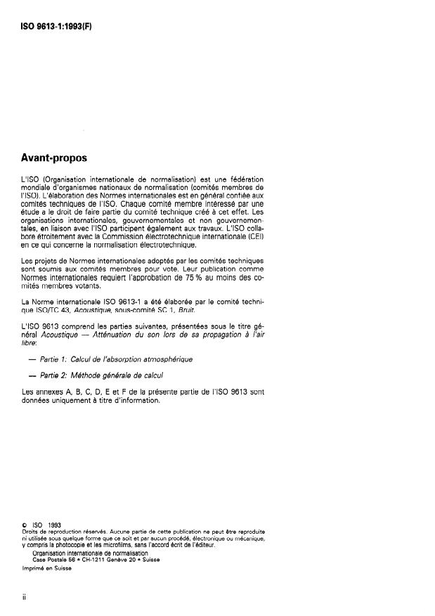 ISO 9613-1:1993 - Acoustique -- Atténuation du son lors de sa propagation a l'air libre