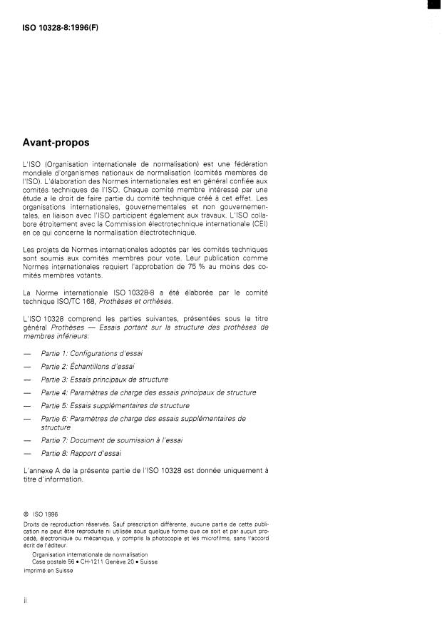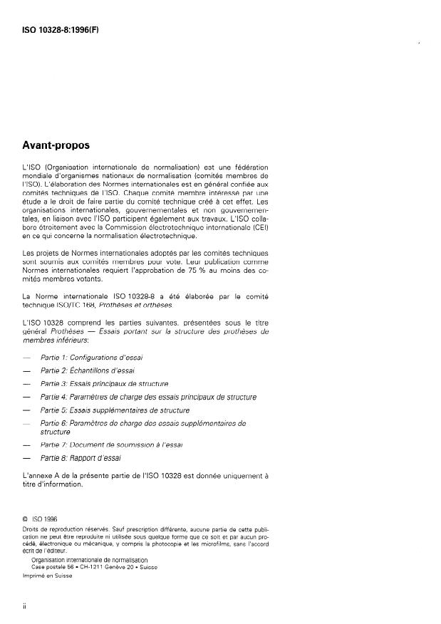 ISO 10328-8:1996 - Protheses -- Essais portant sur la structure des protheses de membres inférieurs