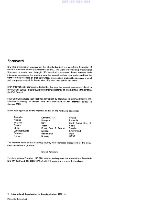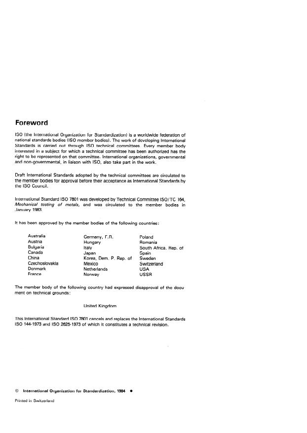 International Standard IS0 7801 was developed by Technical Committee ISO/TC 164,