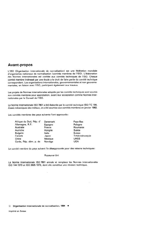 La Norme internationale ISO 7801 a été élaborée par le comité technique ISO/TC 164,