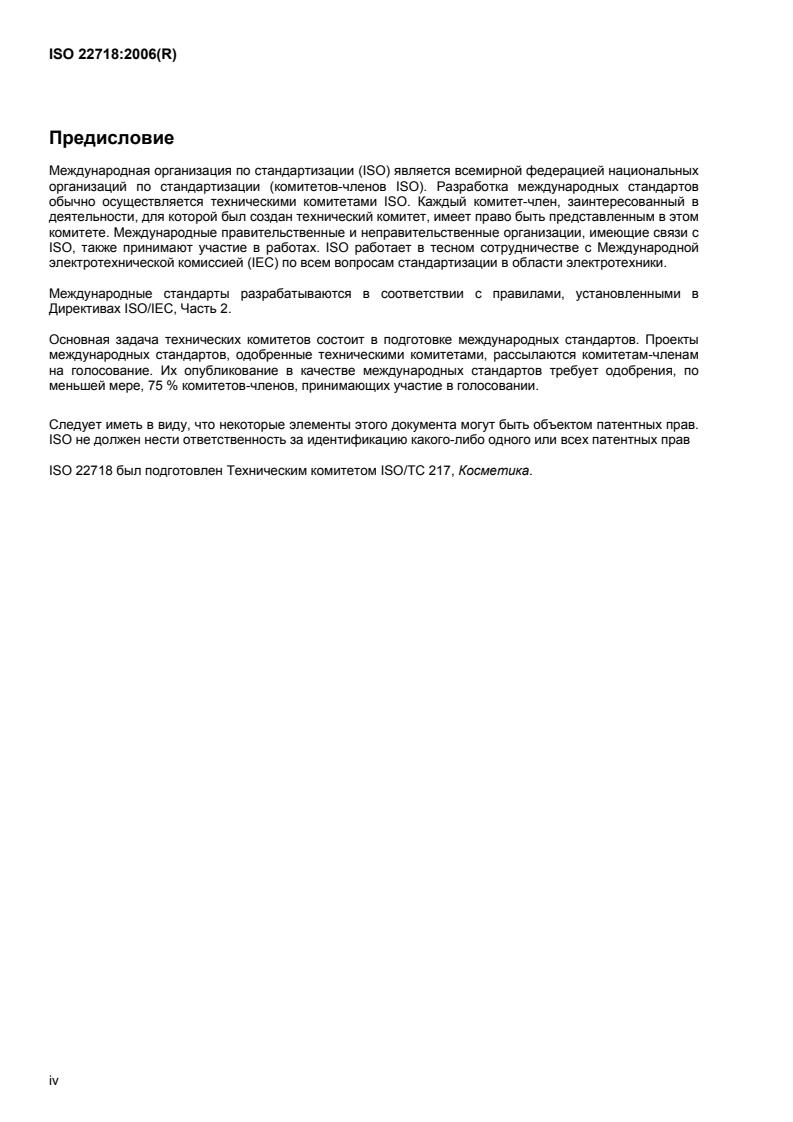 ISO 22718:2006 is a standard published by the International Organization for Standardization (ISO). Its full title is "Cosmetics — Microbiology — Detection of Staphylococcus aureus". This standard covers: ISO 22718:2006 gives general guidelines for the detection and identification of the specified micro-organism Staphylococcus aureus in cosmetic products. Micro-organisms considered as specified in this International Standard might differ from country to country according to national practices or regulations. In order to ensure product quality and safety for consumers, it is advisable to perform an appropriate microbiological risk analysis to determine the types of cosmetic product to which ISO 22718:2006 is applicable. Products considered to present a low microbiological risk include those with low water activity, hydro-alcoholic products, extreme pH values, etc. The method described in ISO 22718:2006 is based on the detection of Staphylococcus aureus in a non-selective liquid medium (enrichment broth), followed by isolation on a selective agar medium. Other methods may be appropriate dependent on the level of detection required. Because of the large variety of cosmetic products within this field of application, this method may not be appropriate for some products in every detail (e.g. certain water immiscible products). Other International Standards (ISO 18415) may be appropriate. Other methods (e.g. automated) may be substituted for the tests presented here provided that their equivalence has been demonstrated or the method has been otherwise validated.