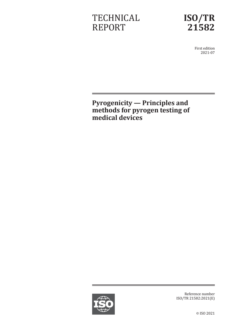 ISO/TR 21582:2021 - Pyrogenicity — Principles and methods for pyrogen testing of medical devices Released:7/12/2021