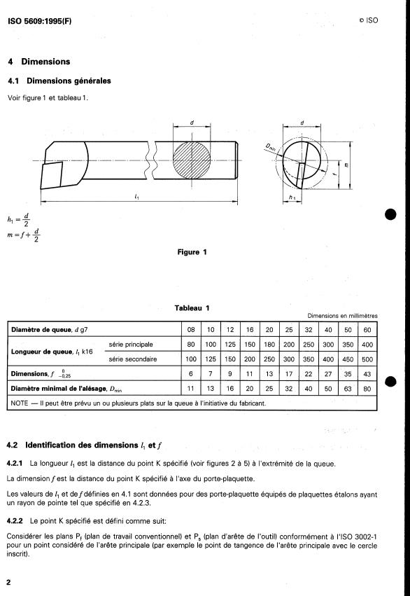monoblocs, en acier, à queue cylindrique, et spécifie les porte-plaquette recommandés (voir article 5).