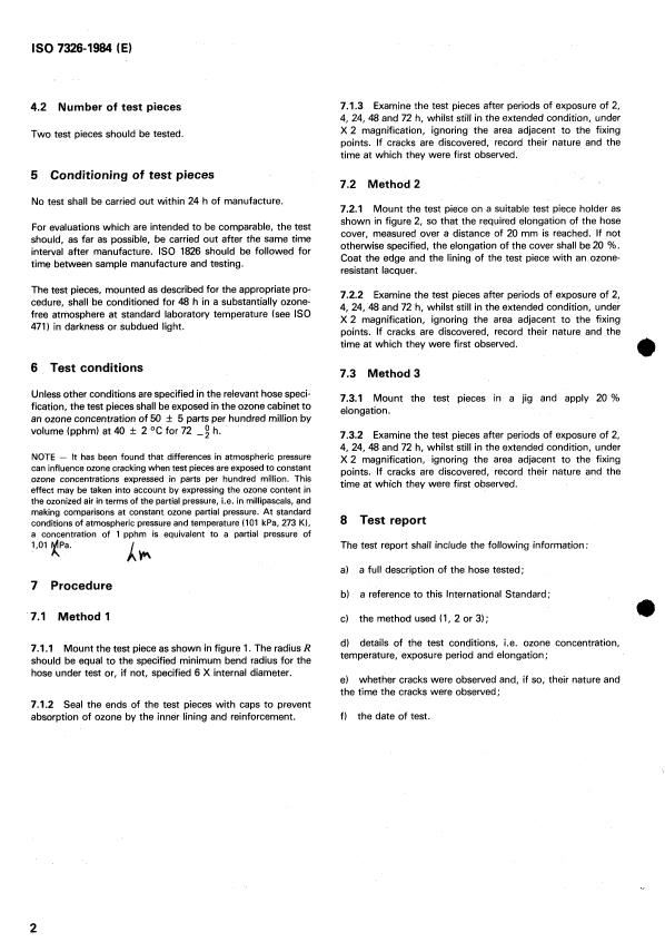 ISO 7326:1984 - Rubber and plastics hoses -- Assessment of ozone resistance under static conditions