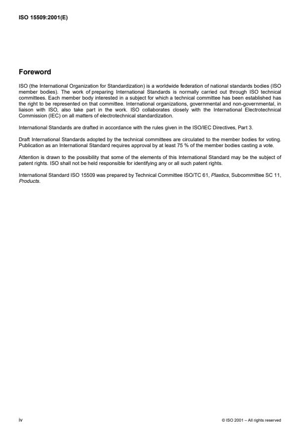 International Standard ISO 15509 was prepared by Technical Committee ISO/TC 61, Plastics, Subcommittee SC 11,