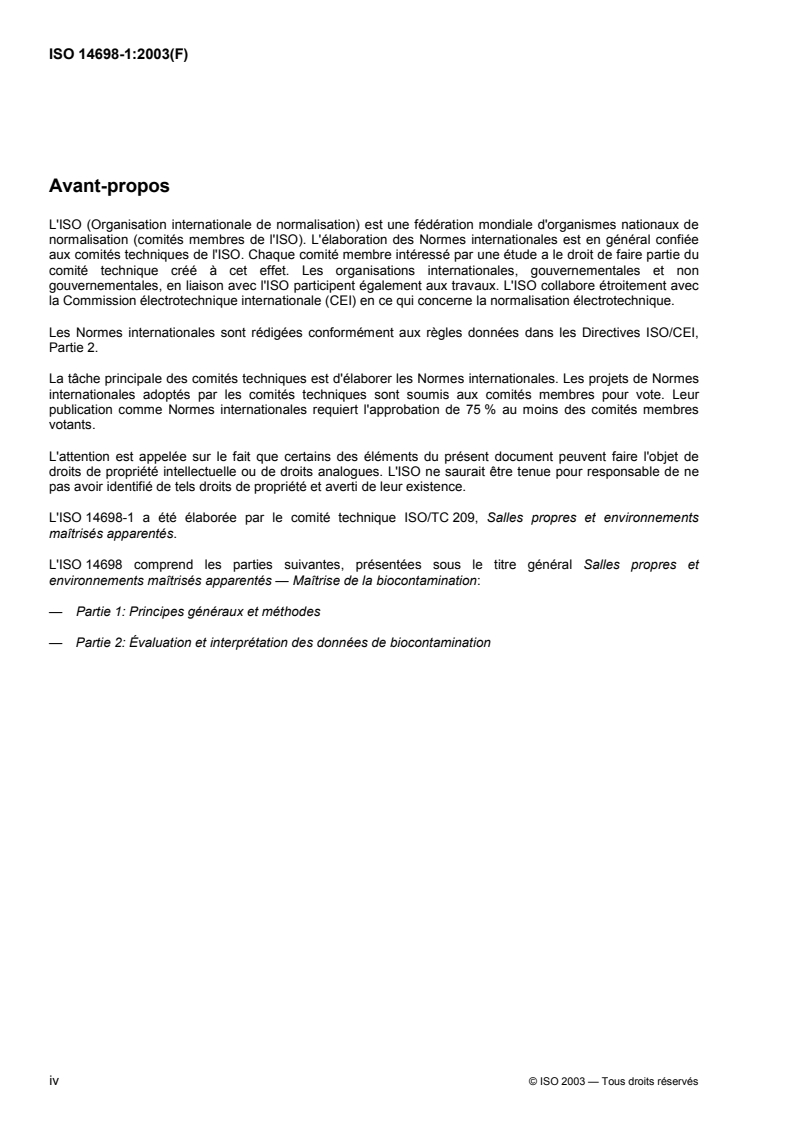 ISO 14698-1:2003 - Salles propres et environnements maîtrisés apparentés — Maîtrise de la biocontamination — Partie 1: Principes généraux et méthodes/17/2003