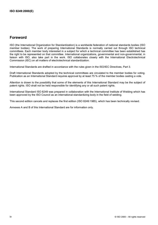 ISO 8249:2000 is classified under the following ICS (International Classification for Standards) categories: 25.160.40 - Welded joints and welds. The ICS classification helps identify the subject area and facilitates finding related standards.