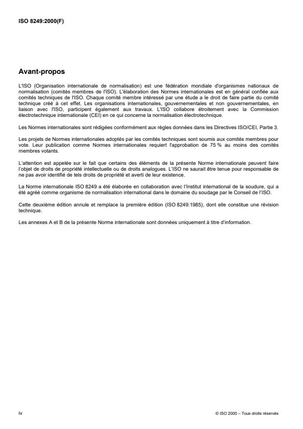 ISO 8249:2000 is a standard published by the International Organization for Standardization (ISO). Its full title is "Welding — Determination of Ferrite Number (FN) in austenitic and duplex ferritic-austenitic Cr-Ni stainless steel weld metals". This standard covers: La présente Norme internationale est applicable au mesurage de l'Indice de Ferrite du métal fondu à l'état brut de soudage. Elle est également applicable à du métal fondu ayant été soumis à des traitements thermiques provoquant la transformation complète ou partielle de la ferrite en n'importe quelle phase non magnétique. Les traitements thermiques d'austénisation modifiant la taille et la forme de la ferrite modifient également la réponse magnétique de laferrite.La méthode n'est pas destinée au mesurage de la teneur en ferrite d'échantillons en acier austénitique ou duplex ferritique-austénitique moulés, forgés ou corroyés.